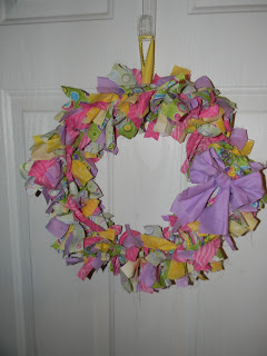 Rag wreaths are easy to make if you have a few hours. They make great inexpensive & thoughtful gifts for all occasions! This is one of the many wreaths that my daughters and I made for Mother's Day. Unfortunately, I did not take any other close up pictures of the ones that I made for the craft fair. If you look in my previous blog you can see some wreaths located in those pictures.
